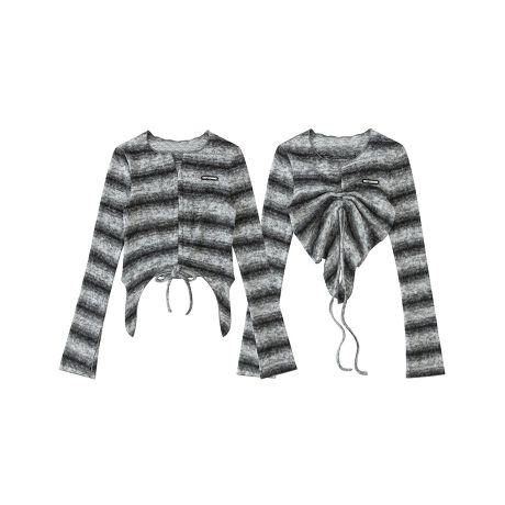 【HOOK】for girls バターフライ変形裾グラデーションボーダーカットソー