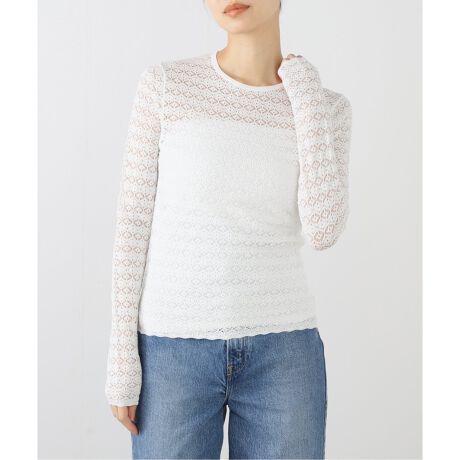 透け感のあるレース編みが華やかで上品なプルオーバー。