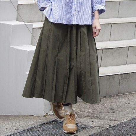 プリーツが縦ラインを強調してすっきり見えを叶えてくれるのが嬉しいポイント。