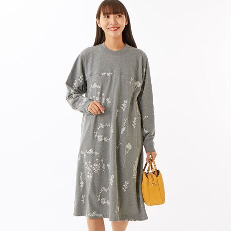単色の総刺繍で上品なテキスタイルに仕上げた裏毛素材のワンピース。