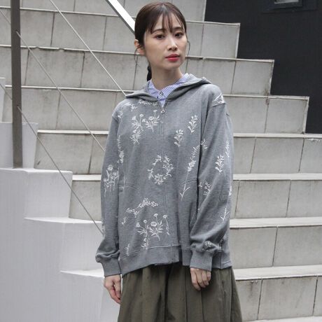 40/20裏毛 フラワーリース刺繍フーディ/パーカ