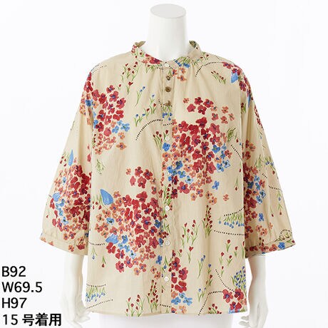 [15〜19号]80ローンルシオール加工フラワーパレットプリントブラウス