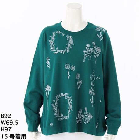 [15〜19号]40/20裏毛 フラワーリース刺繍トレーナー