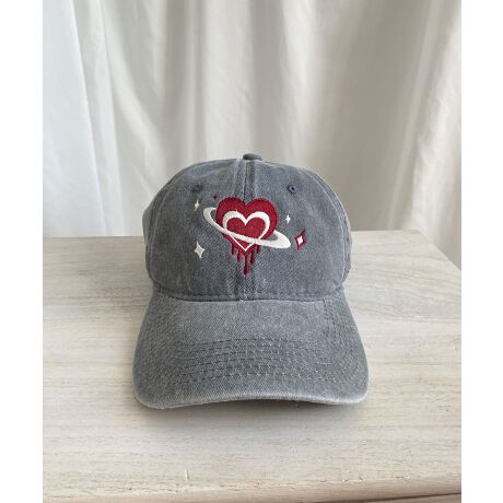 ストリート感溢れるインパクトハート刺繍ウォッシュコットンキャップ。