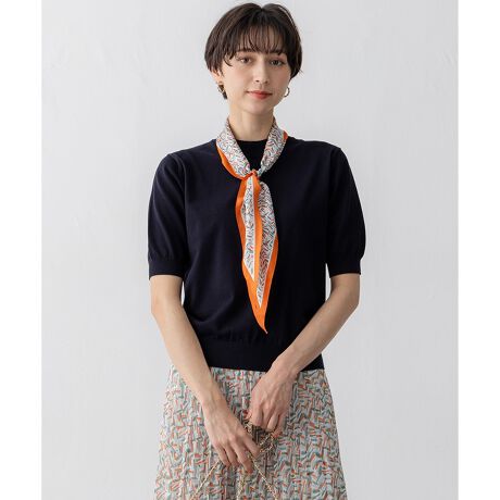 シンプルなモックネックのプルオーバーニット。気候に合わせて首もとをほど良くカバーします。袖丈を肘上にすることで、一枚着としてもバランスよく真夏まで着回せる便利アイテムです。同素材のカーディガンと組み合わせれば、クラシカルなスタイルが完成します。カラーは、ベーシックなホワイト(#001)、ヘルシーな印象のイエロー(#040)、爽やかなブルー(#070)、洗練された雰囲気のネイビー(#075)の4色展開です。
