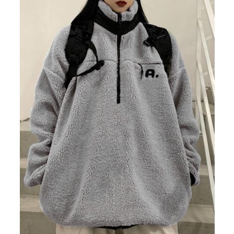 ボリュームのあるシルエットが可愛いハーフジップボアジャケット。ボア素材が空気を多く含むため空気の曹で保湿力を維持し、とても防寒性が高く暖かいです。すっきりとしたノーカラーデザインのオーバーなサイズで、腰回りまで隠れる立体的なシルエットになっています。