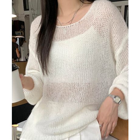 ゆるシルエットが可愛いシアーニットプルオーバー。