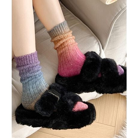 カラフルカラーが目をひく、タイダイデザインのソックス。グラデーションが左右で異なるデザインなので、よりユニークな印象に。ウール素材なので柔らかく温もりのある履き心地です。いつものコーディネートのアクセントや、古着スタイルにも相性抜群です♪