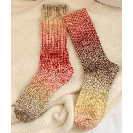 カラフルカラーが目をひく、タイダイデザインのソックス。グラデーションが左右で異なるデザインなので、よりユニークな印象に。ウール素材なので柔らかく温もりのある履き心地です。いつものコーディネートのアクセントや、古着スタイルにも相性抜群です♪