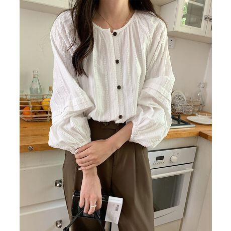 ふんわりとしたシルエットが女性らしく優しい印象のブラウス。 綿100%なので、柔らかな質感で肌触りも抜群。