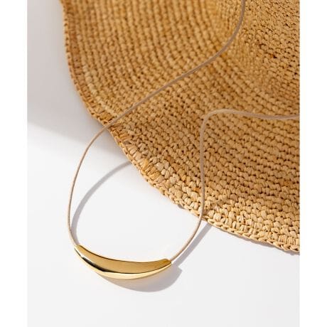 オリジナルのメタルバートップに丸紐を通したデザインのショートネックレスです。長さ調節が可能な紐タイプなので紐を短くしてチョーカーとして、少し長めにしてネックレスとしてお使い頂けます。どんなスタイリングに合わせても、上品なアクセントになってくれます。カラーはあたたかみのあるゴールド(#090)とエッジの効いたモードな印象のシルバー(#091)の2色展開です。