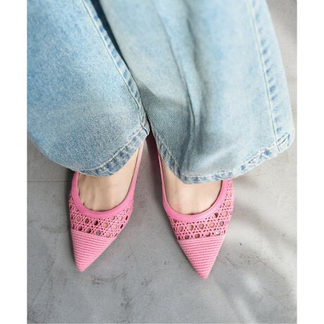 涼し気なクロシェ編み風のレースが可愛いスリングバックフラット。