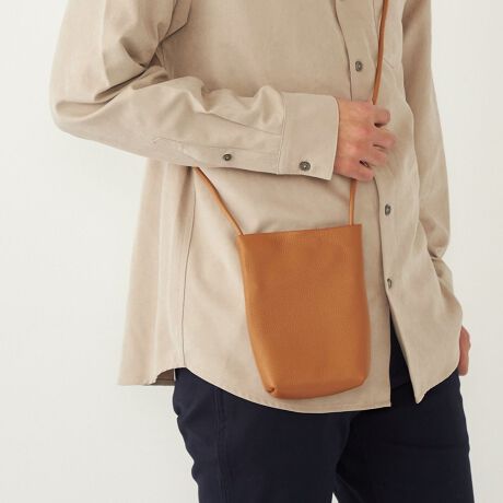 シボ感のある牛革を使用したサコッシュ。