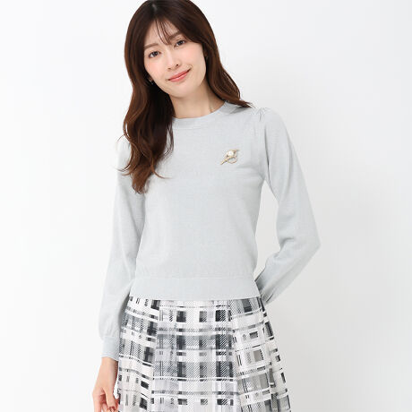 エレガントなアクセントをプラスするブローチ付きのラメバリエーションニット。ラメの繊細な輝きと柔らかなふくらみのあるスリーブが、さりげなく華やかな印象を演出。普段使いはもちろん、仕事やデートなどの様々なシーンにも活躍してくれるアイテムです。■fabric透け感[やや有り]裏地[無し]伸縮性[有り]生地の厚さ[普通]