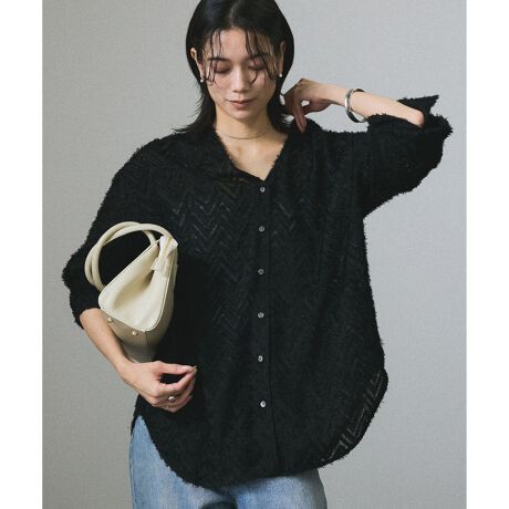 モンターニュジャガードVネックシャツ / シアーブラウス