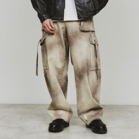 スプレーブリーチデニムカーゴパンツ