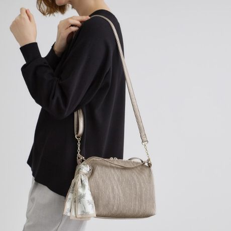 grove人気素材の合成皮革に細くプリーツ加工を施した人気のショルダーバッグです。