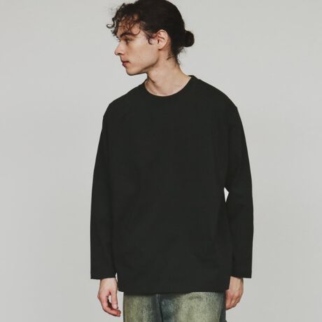シンプルで使いやすく、嬉しい機能素材を採用したオーバーサイズプレーティング天竺長袖Tシャツ。