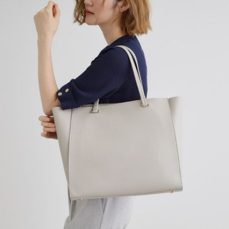 ハンドルの根元のメタルパーツがフェミニンなA4サイズが収納可能なトートバッグです。