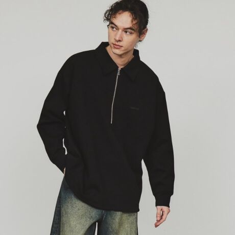 ルーズハーフジップポロスウェット