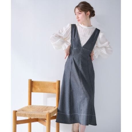 細めのウエストリボンディティールは外してもすっきり着こなせるデザインです