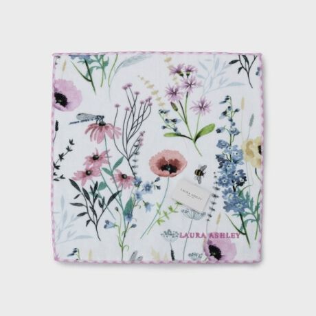 繊細なポピーとデルフィニウムが描かれ、英国らしいカントリーガーデンを思い起こさせるプリントです。