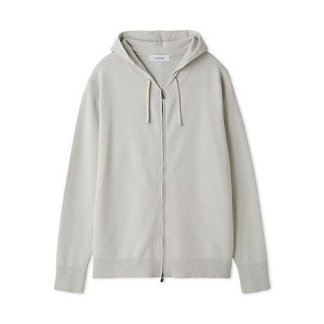 フード紐の通し口のハトメやメタルファスナーの光沢がアクセントとなっています。