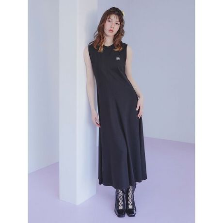 ロゴ刺繍がワンポイントのノースリーブカットソーワンピース。ポンチ素材で身体のラインを拾いすぎず、適度なフィット&フレアラインを形成。肩にアメスリのような切り替えを入れて少しスポーティーにデザインをアップグレードしています。