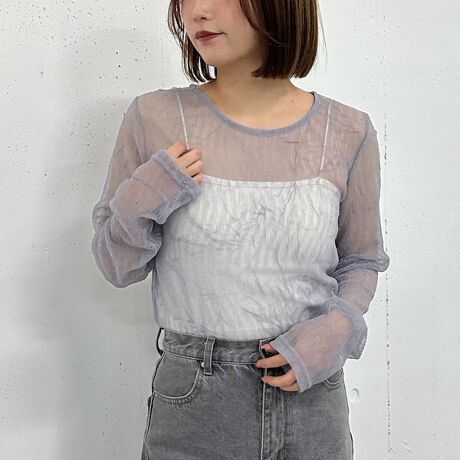 表面にリンクル加工がされたチュールトップスが再登場!