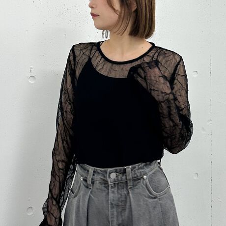 表面にリンクル加工がされたチュールトップスが再登場!