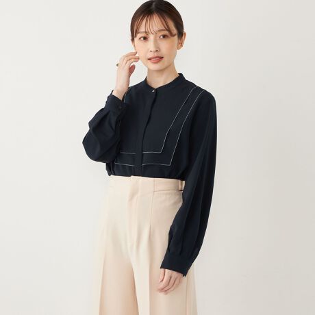 SHIPS Colors:〈手洗い可能〉ジョーゼット ビブカラー シャツ◇