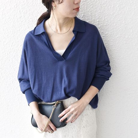 今季らしいスキッパーネックのポロシャツ。