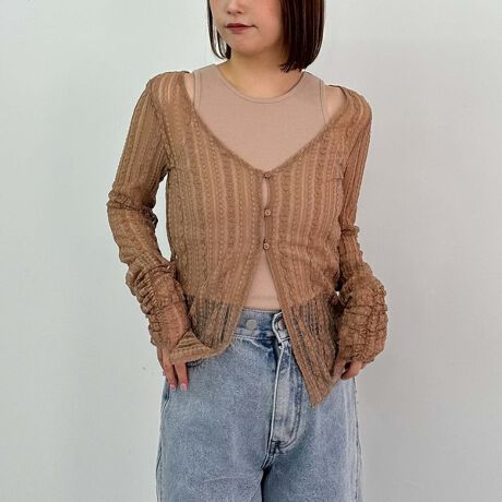 春の肌見せスタイルにおすすめのレイヤードトップス。