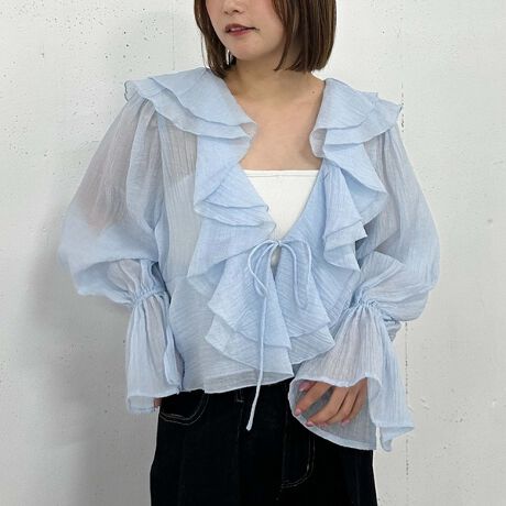 ボリュームたっぷりのフリルが目を引く主役ブラウス。