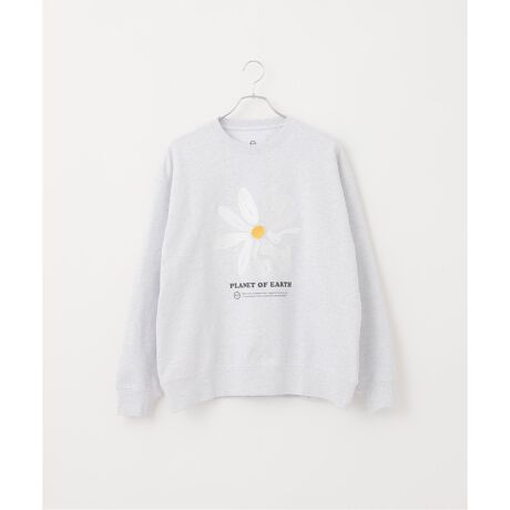 植物園の花をモチーフの大胆な花柄が入ったクルーネックスウェット。