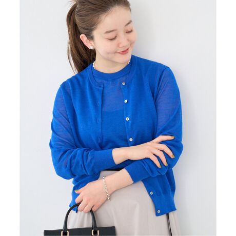 さらりとしたタッチが特徴のラミークルーネックカーディガン。