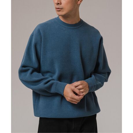シェニールヤーンで編まれたクルーネックニット。3シーズン着用ができるようにクリアな糸にアップデート。ブルー・レッドの新色も魅力的です。