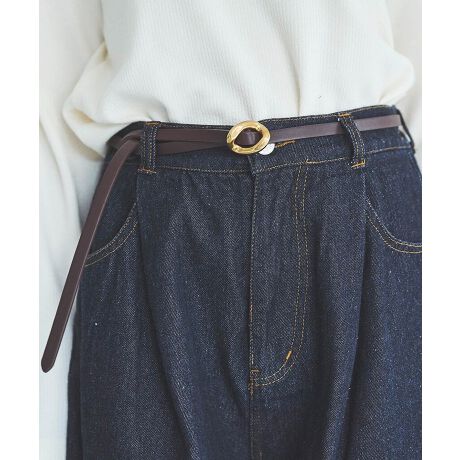 一癖ある印象的なバックルが目を惹くニュアンス感たっぷりの細ベルト。