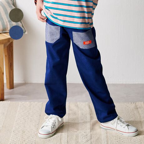 ネイビーはデニムニット、グリーンは無地カット素材。テーパードシルエットがお洒落な長パンツ、長ズボン。ポケットの配色切替やウエストリブの配色がポイント!【アイテム】シンプル ベーシック 無地 カジュアル お洒落 オシャレ かっこいい かわいい 可愛い 普段着 お外着 お外遊び着 デイリーウェア お出かけ着 ロング丈 長丈 長ズボン フル丈 ボトムス 子ども こども 男児 男の子 ボーイズ キッズ ベビーサイズ トドラーサイズ 幼稚園 保育園 小学校 通園 通学 小学生 2025年春夏物新作 丸高衣料 緑色 紺色 クレセント