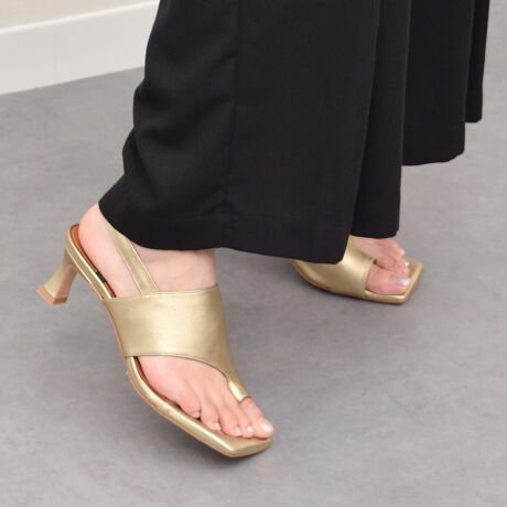 6cmヒールのバックバンドトングサンダルはカジュアル過ぎず、スタイリッシュな印象です。