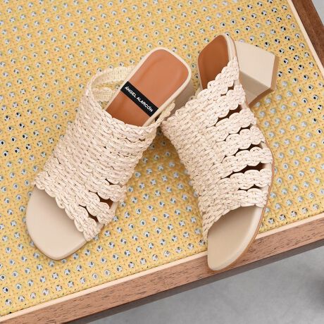 ANGEL ALARCON◆5.5cmヒール◆チャンキーヒールラフィアサンダル