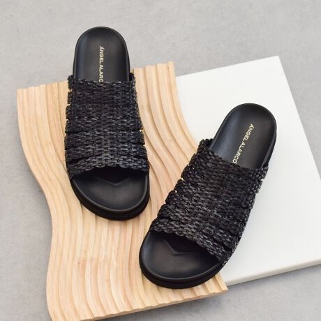 ANGEL ALARCON◆2.5cmヒール◆フットベッドラフィアサンダル