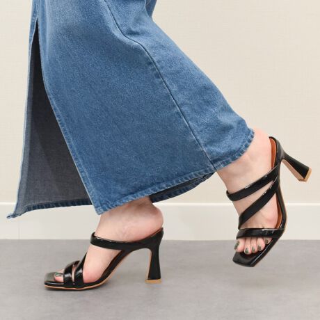 シンプルなデザインのスクエアトウハイヒールサンダルは、ベーシックで飽きのこないデザインなので、長くお使いいただけます。