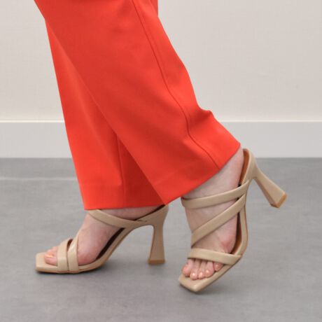 シンプルなデザインのスクエアトウハイヒールサンダルは、ベーシックで飽きのこないデザインなので、長くお使いいただけます。