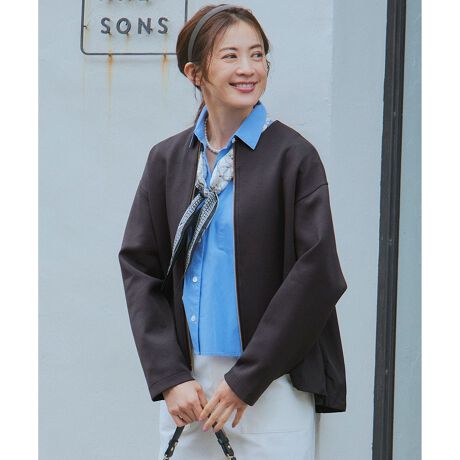 後ろのヨーク下から別素材をコンビ使いにし、たっぷりとギャザーを入れたAラインのライトアウターです。裾のゴムをドロストしてヒップ回りのシルエットの変化をお楽しみいただけます。また、衿ぐりはミニマルなクルーネックなのでスポーティーになりすぎず様々なコーディネートに取り入れやすいアイテムです。バッグデザインのタフタが正面から少し見えてポイントになりながら 前のシルエットはコンパクトなのでバランスのとりやすいデザインです。ギャザー部分と同じ素材を使用したスカートとセットアップで合わせたり、きれいめなボトムと合わせてオケージョンのアウターとしてもお召しいただけます。カラーは、優しい印象のベージュ(#033)、ニュアンスカラーが新鮮なグレー(#004)、ベーシックなブラック(#005)の3色展開です。