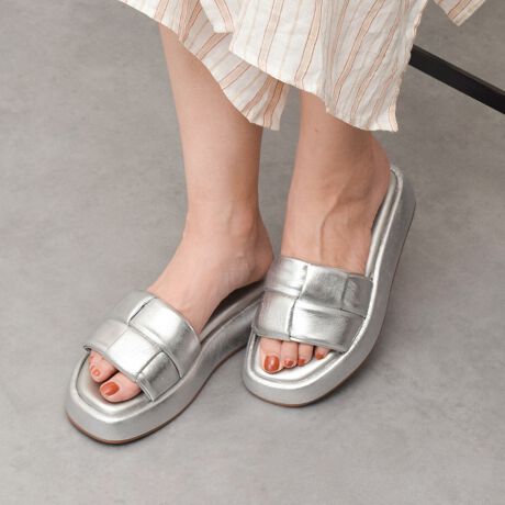 レザーのイントレチャートが上品な印象のボリュームソールサンダル。