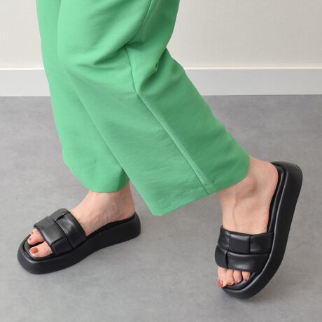 レザーのイントレチャートが上品な印象のボリュームソールサンダル。