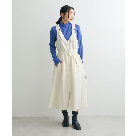 カジュアルに着こなすミリタリーライクなジャンパースカート。伸びの良いリブ仕様のウエストでシルエットにメリハリを効かせた女性らしいデザインです。スウェットやニットなど厚手のトップスもインしやすい幅広のアームホールもポイント。フロントのダブルジップで様々なアレンジスタイルを楽しめるおすすめのアイテムです。透け感[なし]