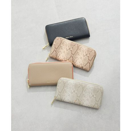 型押しフェイクレザーで仕立たツートンカラーのデザイン財布。紙幣もすっきりと収まる横長タイプで安心のラウンドジップ仕様です。インナーにはコイン収納ポケットに沢山入るカードケースも配置。品のあるメタル金具やフロントのロゴもおしゃれなポイントです。※モデル着用画像は、光の当たり具合で色味が違って見える場合がございます。※お使いのモニター環境によって商品の色味が違って見える場合がございます。