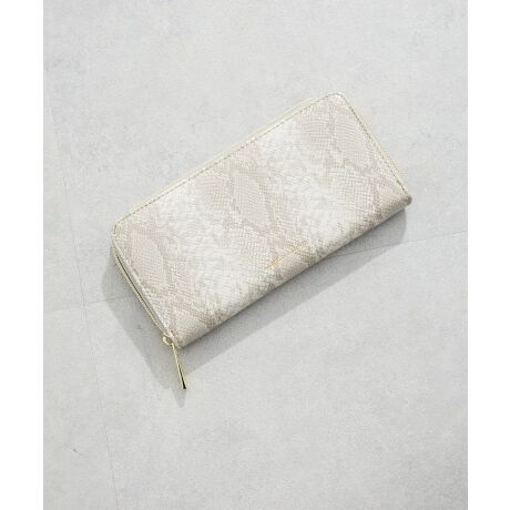 型押しフェイクレザーで仕立たツートンカラーのデザイン財布。紙幣もすっきりと収まる横長タイプで安心のラウンドジップ仕様です。インナーにはコイン収納ポケットに沢山入るカードケースも配置。品のあるメタル金具やフロントのロゴもおしゃれなポイントです。※モデル着用画像は、光の当たり具合で色味が違って見える場合がございます。※お使いのモニター環境によって商品の色味が違って見える場合がございます。